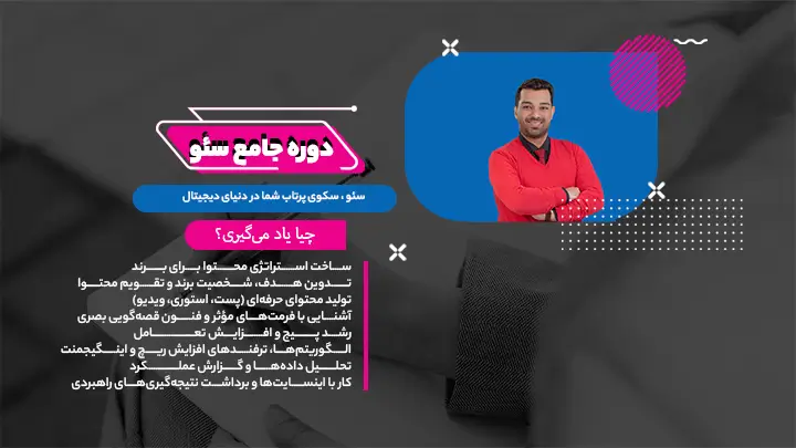 حامد قربانی، مشاور و مدرس سئو، با تجربهای عمیق در این زمینه، به دانشجویان کمک میکند تا درک عمیقی از استراتژیها و تکنیکهای سئو پیدا کنند. او با تمرکز بر اصول پایهای و پیشرفته سئو، راهنماییهای ارزشمندی را ارائه میدهد.